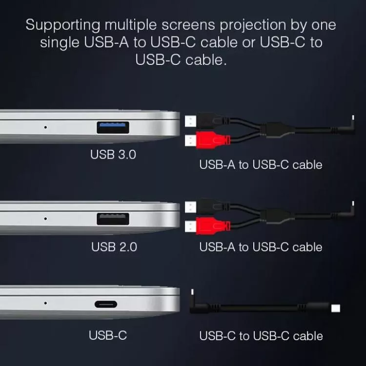 • Effortless Connectivity: USB-A One Cable setup allows for easy connection to your devices, supporting two displays simultaneously.