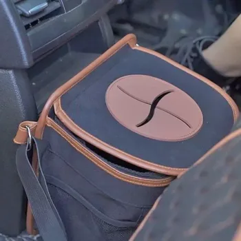 • Durable materials: Crafted from 600D Oxford fabric and eco-leather, this trash can is sturdy and wear-resistant. The lid closes tightly with a magnetic button, while the trash hole is made of soft silicone, safe for children.