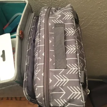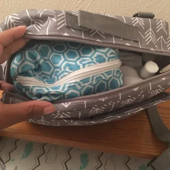 I'm totally in love with this compact yet surprisingly spacious diaper bag! It's been a game-changer for me, especially when I'm on the go and don't want the hassle of carrying a massive diaper bag around. Everything I need for a quick outing fits in perfectly. I've even managed to squeeze in some baby medicine and chest rub, plus a tiny first-aid kit in the side pocket, which is incredibly handy for unexpected bumps and bruises. There's still plenty of room for a hygiene bag and snacks, which is fantastic for longer days out when you need a bit more than the bare essentials. The design is so well thought out, with pockets and compartments that make organizing a breeze. I particularly love how there's a specific place for everything, yet it doesn't feel cramped or cluttered. The only thing I'm still figuring out is the best spot for the baby's cup, but I'm confident that with a little rearranging, everything will fit in seamlessly. Perhaps using some of the creative packing techniques mentioned in other reviews will do the trick. Moreover, the convenience of not having to lug around a bulky bag while still having quick access to diapers, wipes, and other necessities cannot be overstated. It's incredibly freeing to be able to focus more on enjoying my time out with my little one rather than worrying about where to stash a large diaper bag. The strap and stroller clips are a fantastic addition, making it even easier to carry or attach to the stroller, further enhancing its portability and practicality. This bag truly combines functionality with style, making it a must-have for any parent looking for an efficient, stylish solution for carrying their baby's essentials.